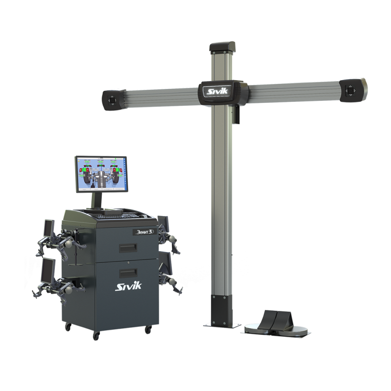 Стенд для регулировки углов установки колес для любых типов легковых автомобилей с диаметром дисков от 12 до 24 дюймов. Данная модель включает в себя технологии 3D-View и HeightRange, а также систему 3D моделирования. Работа стенда осуществляется на базе Windows 10 и собственного специального ПО Зенит-3D от SIVIK.