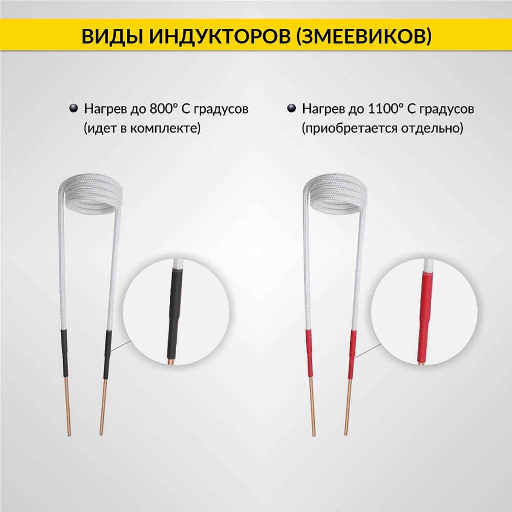 • Комплект индукторов разного размера и форм-фактора подойдет для большинства стандартных задач, а также нестандартных задач, в том числе для работы в труднодоступных местах;