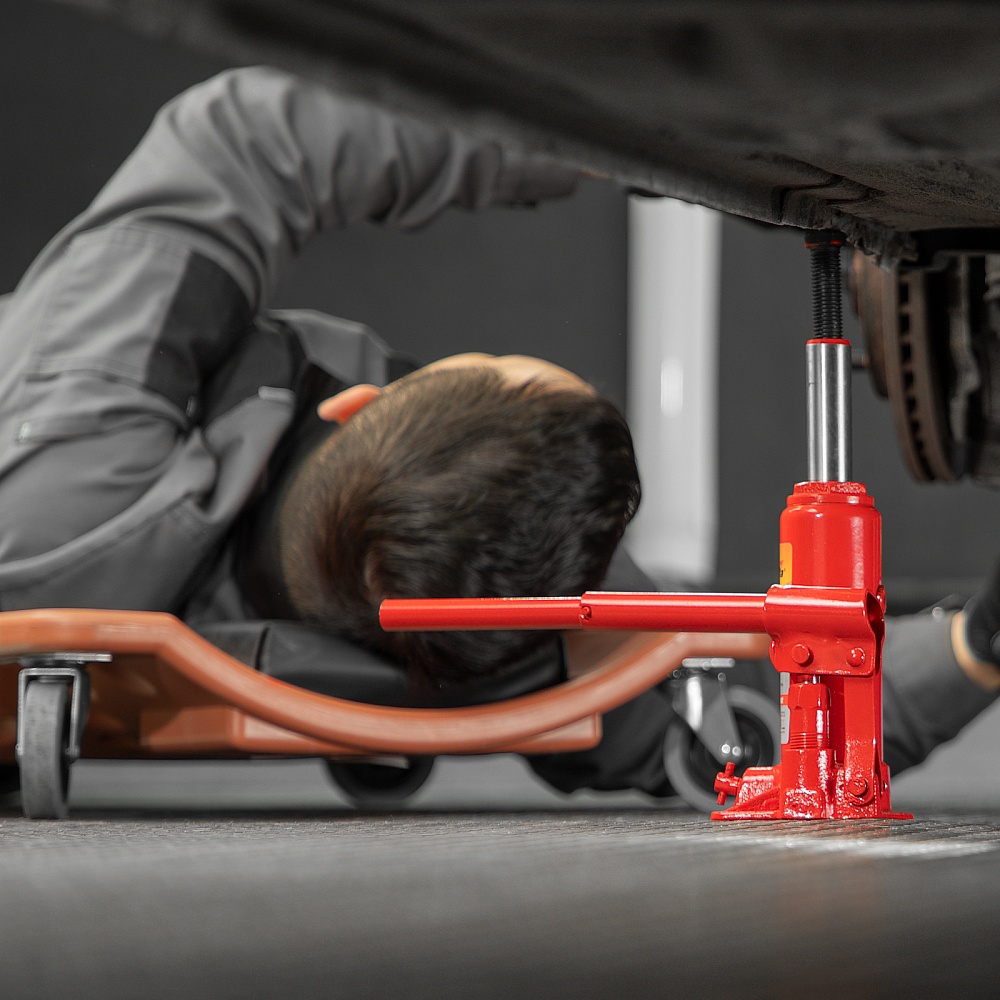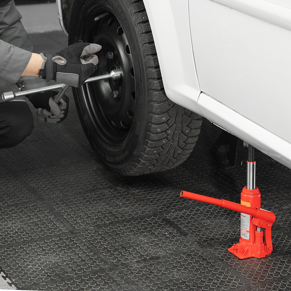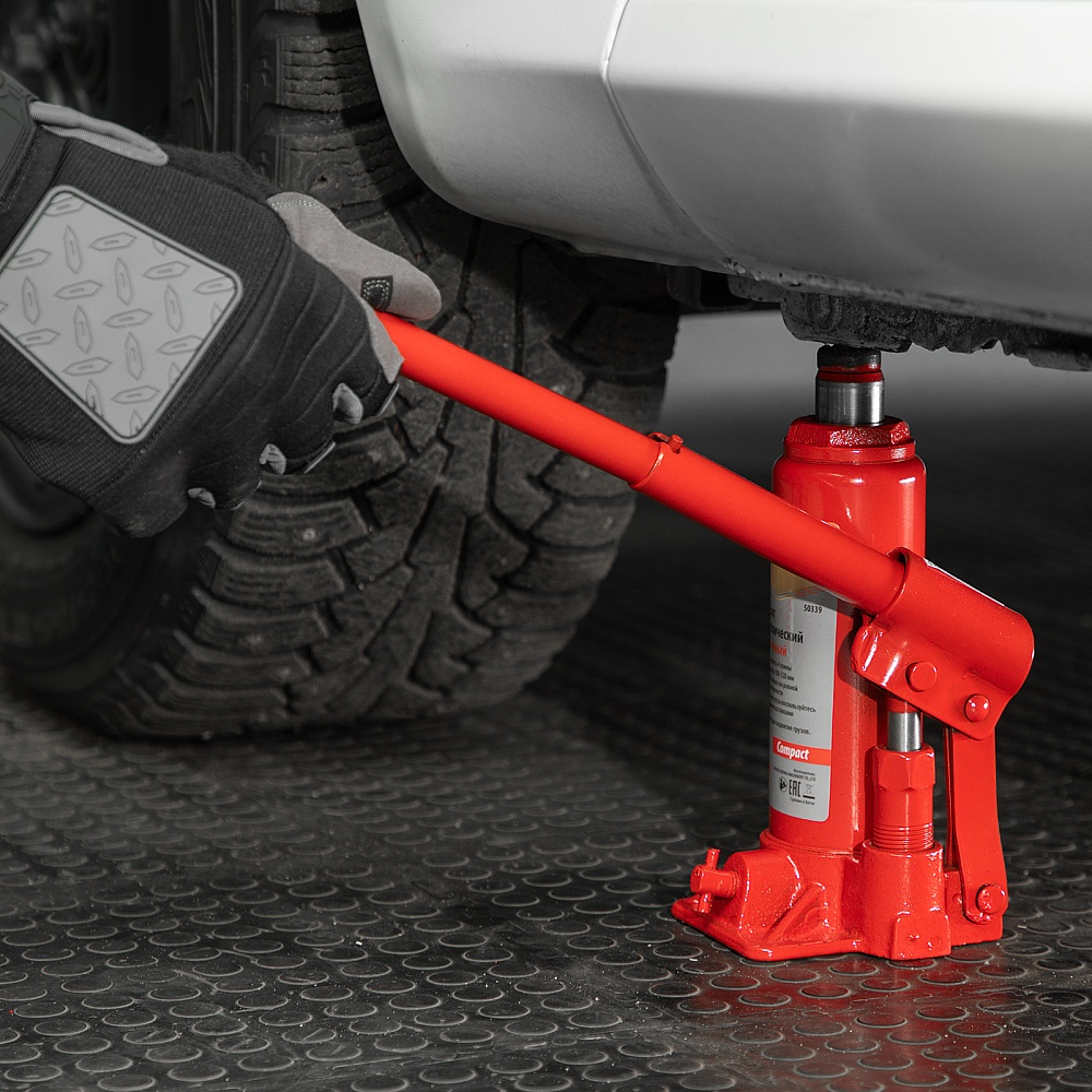 • Удобное хранение и транспортировка — домкрат весит всего 2,4 кг, а благодаря съемному рычагу не занимает много места.