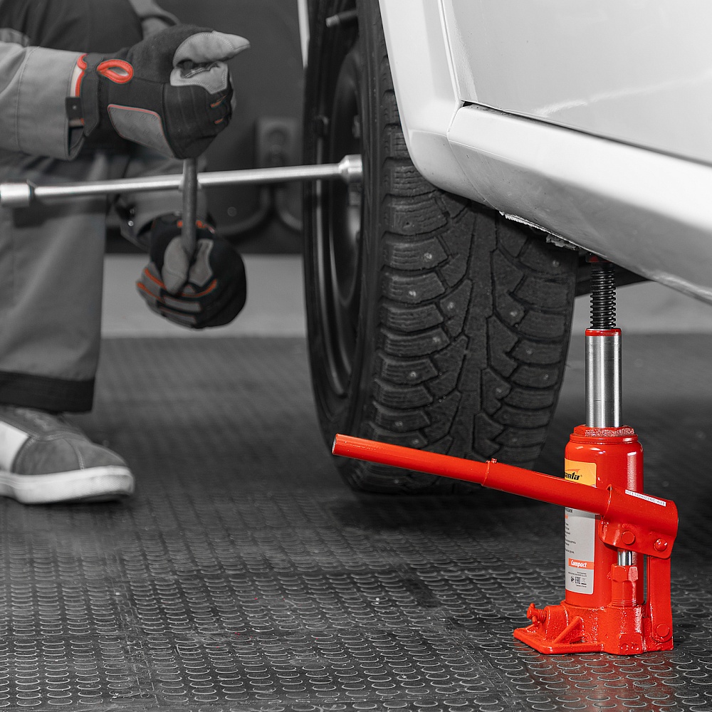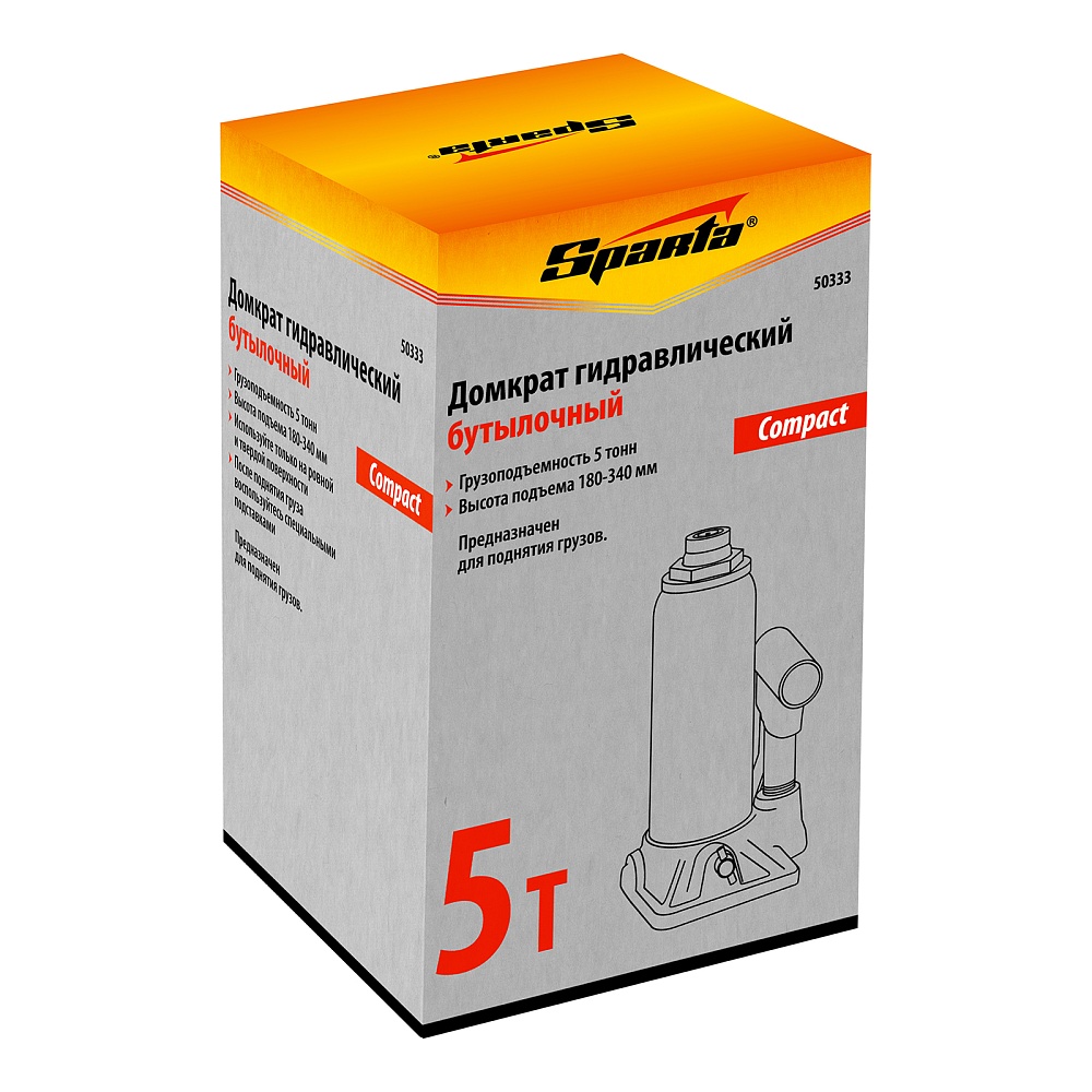 Гидравлический бутылочный домкрат Sparta Compact 50333 предназначен для подъема грузов весом до 5 т на высоту 180-340 мм. Существенно облегчает рабочий процесс, т.к. не требует больших усилий от пользователя. Домкрат будет полезен в автосервисе и гараже для проведения технического обслуживания авто.