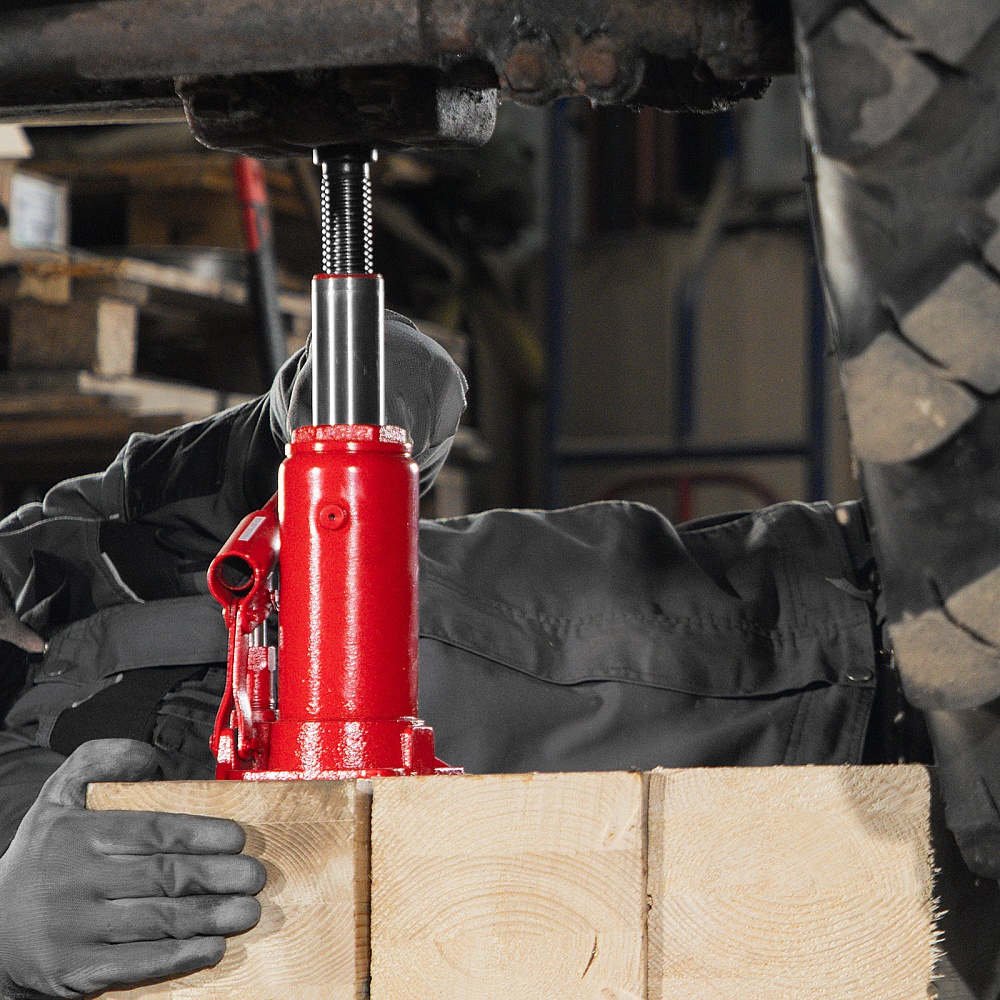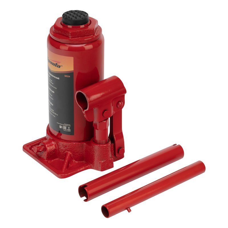 Гидравлический бутылочный домкрат Sparta 50324 рассчитан на подъем грузов весом до 8 т на высоту от 200 до 385 мм. Он пригодится как автолюбителям в гараже, так и профессиональным мастерам в автосервисах. Домкрат обеспечивает плавный подъем груза без особых усилий со стороны пользователя.