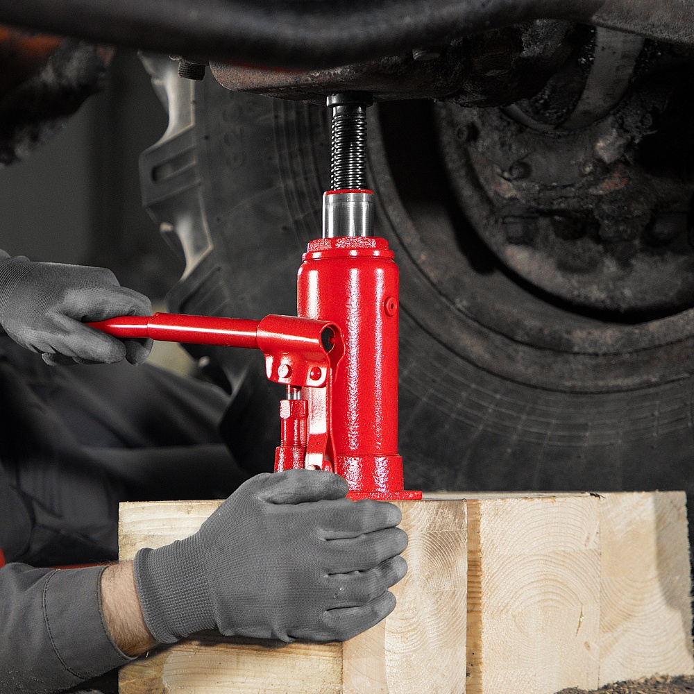 • Удобное хранение и транспортировка — домкрат оборудован съемным рычагом и весит 4,95 кг.