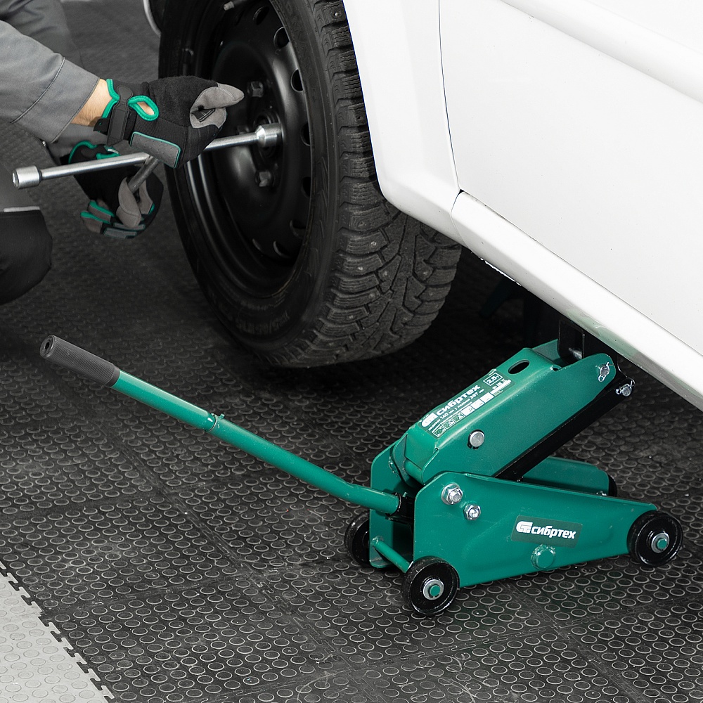 • Маневренность — благодаря поворотным колесам домкрат можно быстро подвести под груз.