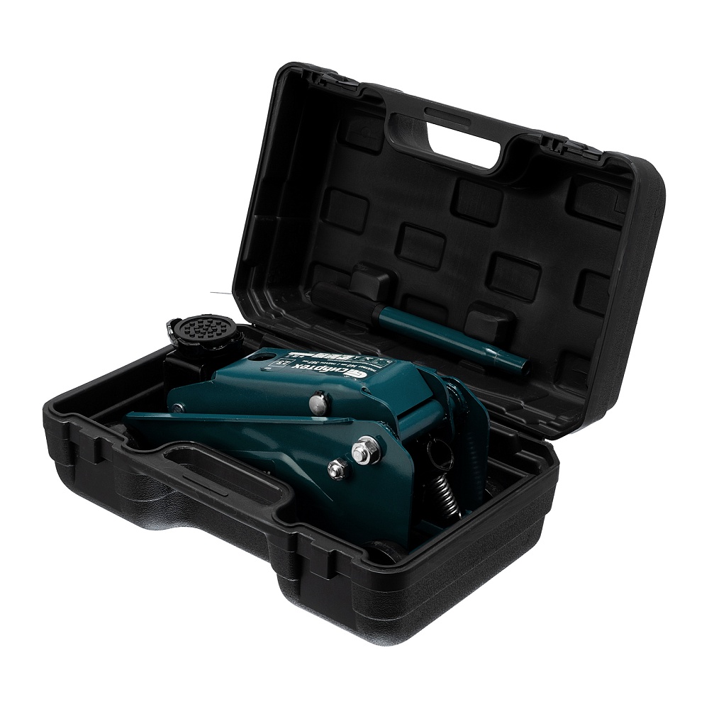 Гидравлический подкатной домкрат Сибртех 50837, поставляющийся в пластиковом кейсе, с высотой подхвата 148 мм, предназначен для подъема грузов массой до 2,5 т на высоту до 387 мм. Применяется для обслуживания автомобилей со стандартным клиренсом. Компактный домкрат подходит для самостоятельного использования автовладельцами.