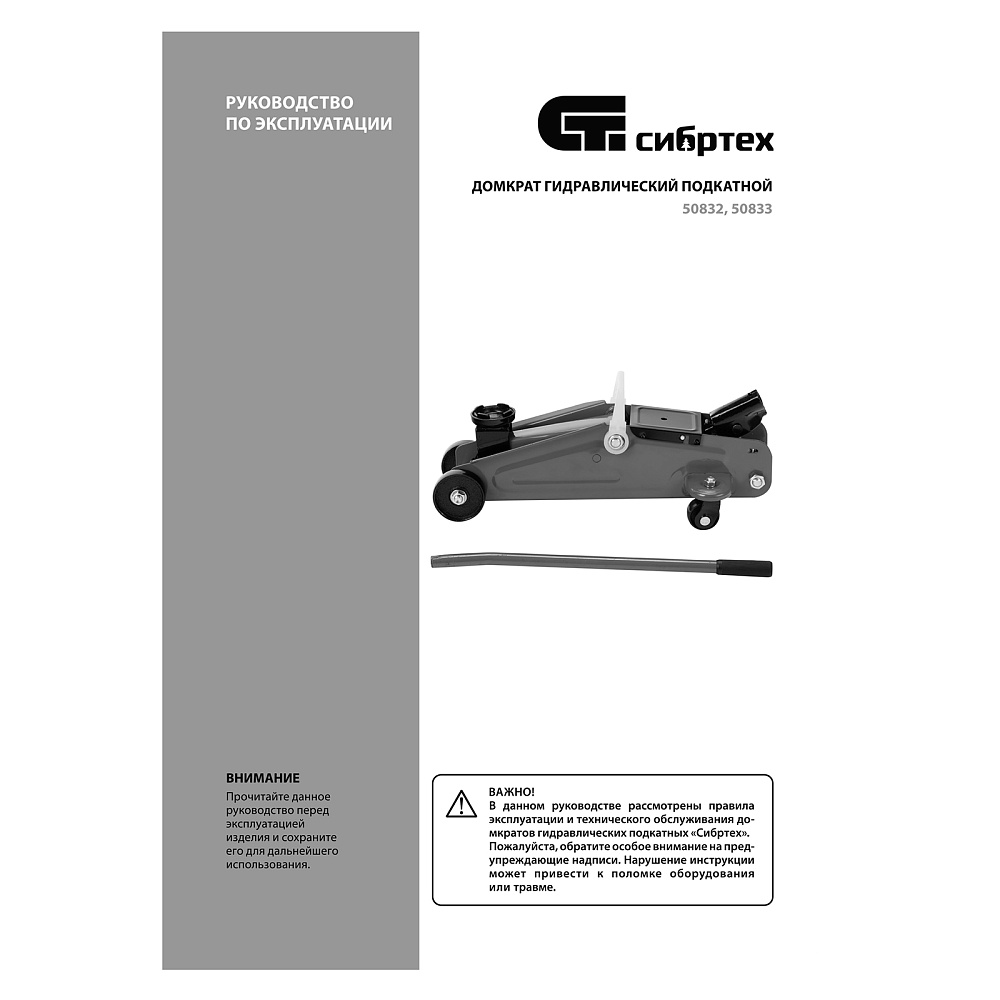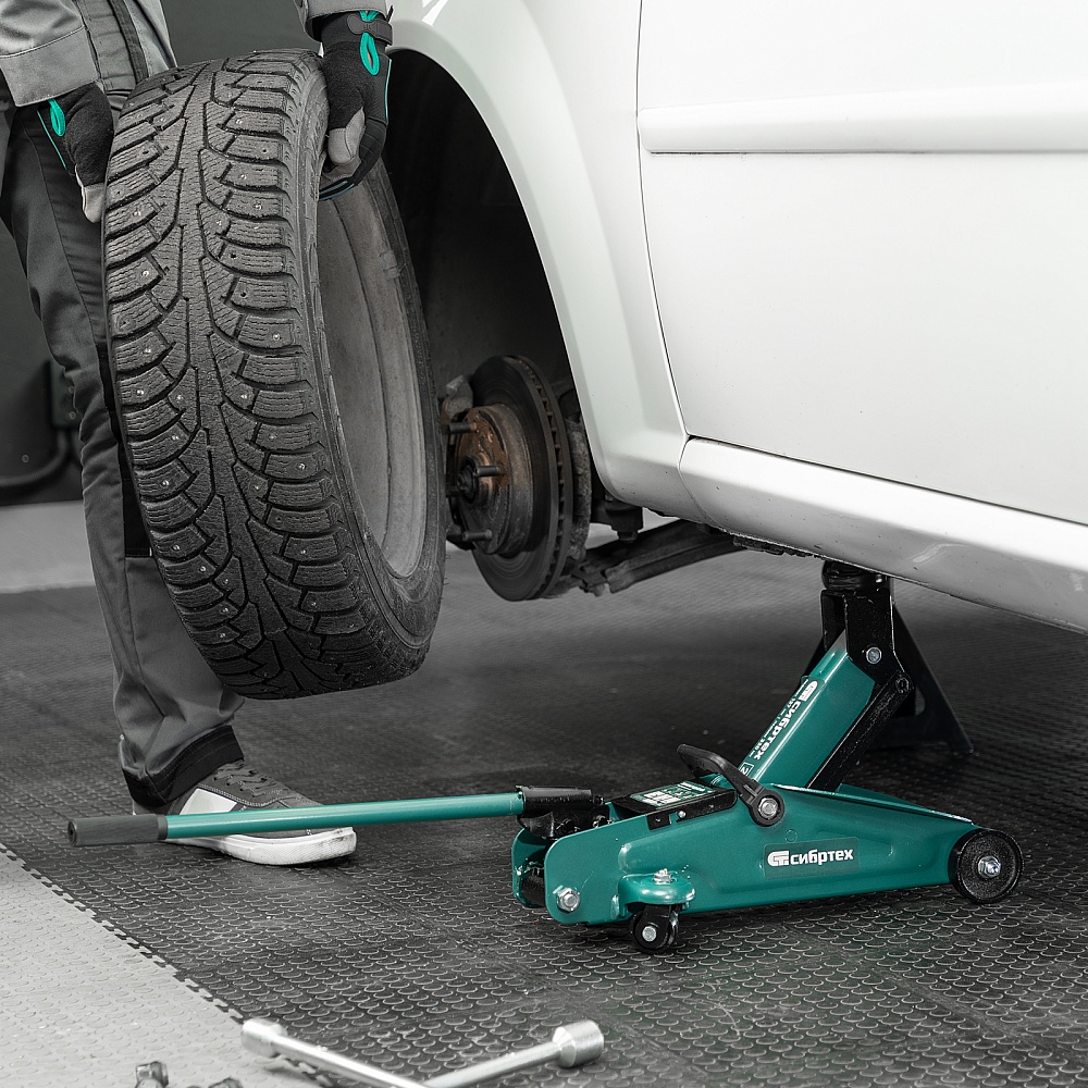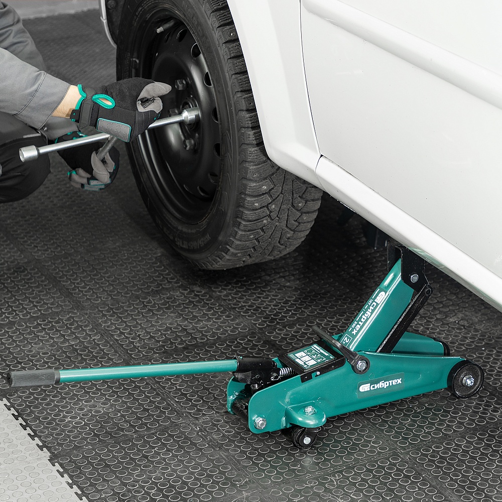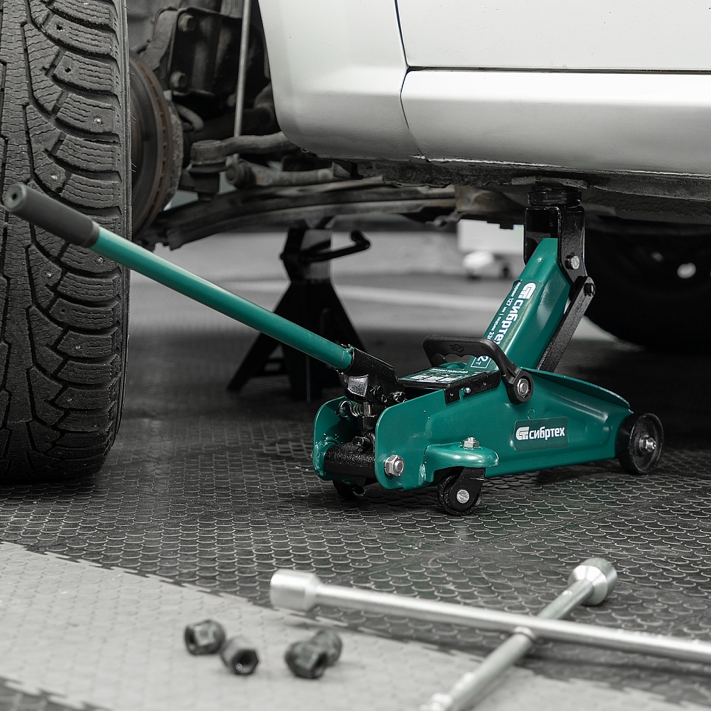 Гидравлический подкатной домкрат Сибртех 50833, поставляющийся в пластиковом кейсе, с высотой подхвата 127 мм, предназначен для подъема грузов массой до 2 т на высоту до 330 мм. Применяется для обслуживания автомобилей со стандартным клиренсом. Компактный домкрат подходит для самостоятельного использования автовладельцами.