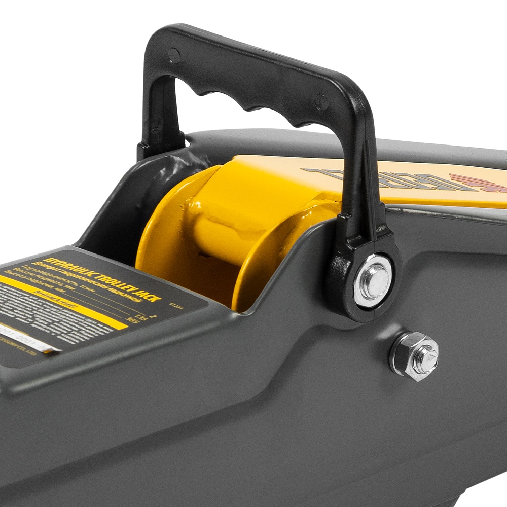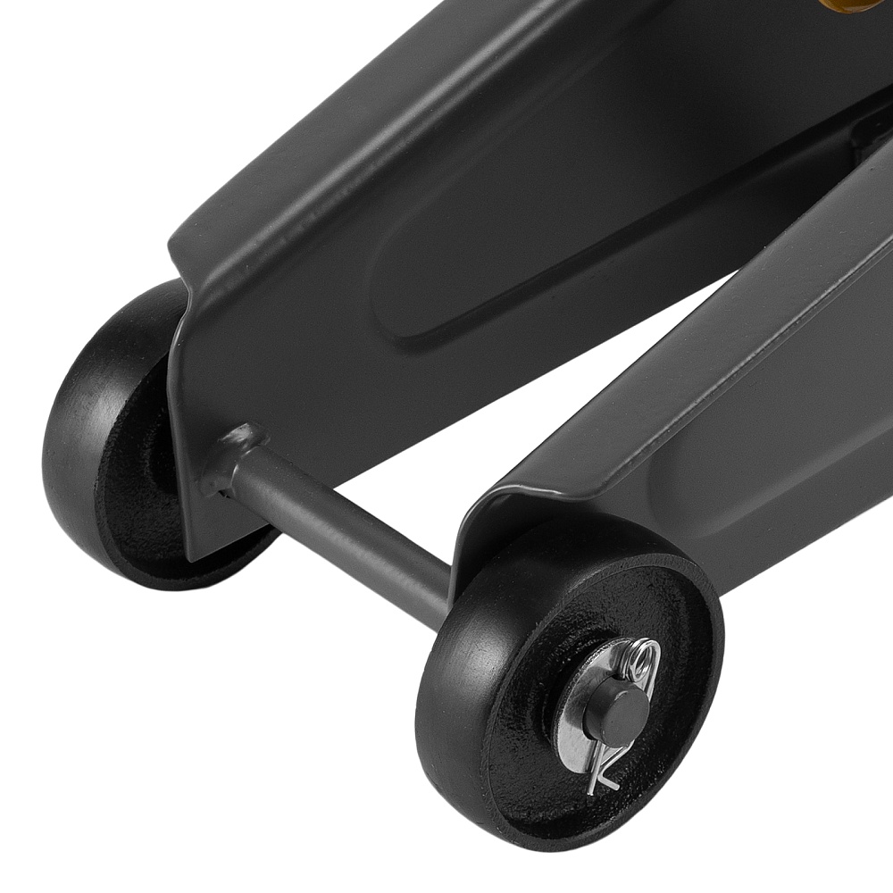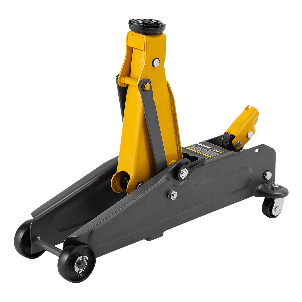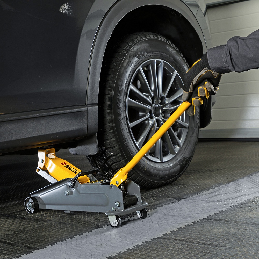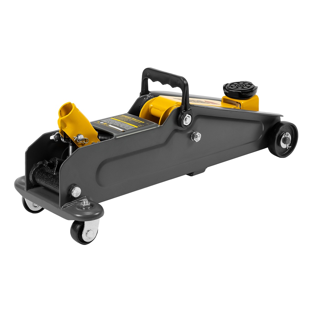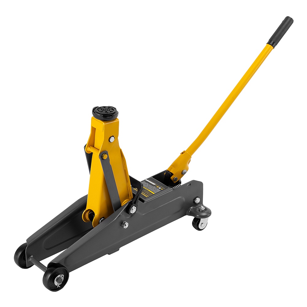 Домкрат подкатной гидравлический, низкопрофильный г/п 3500 кг. Двухпоршневой насос, карданный привод опускания.         Широкий диапазон высоты подъема – от 100 до 533 мм     Усиленная конструкция из высококачественных материалов