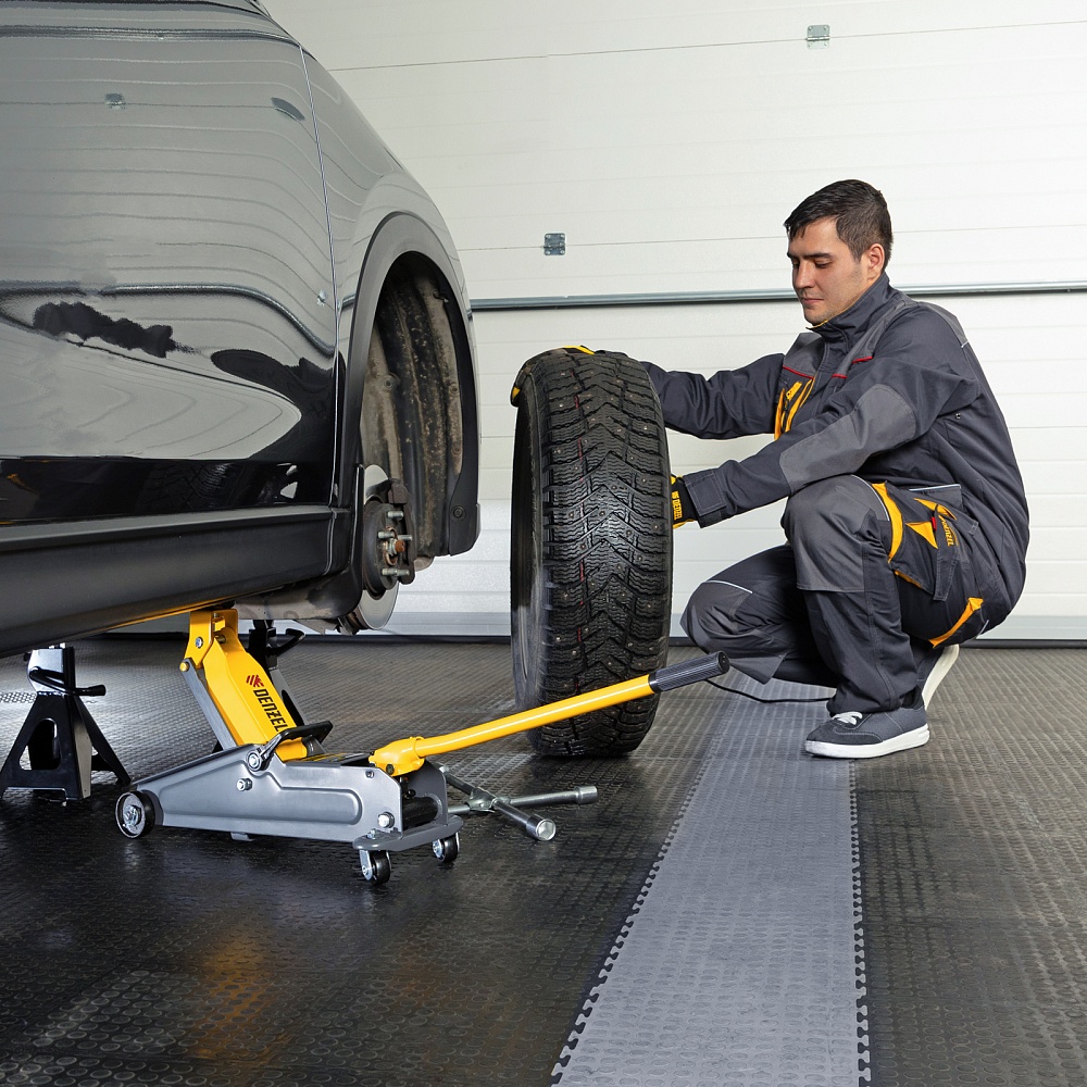 • Аккуратная работа — резиновая опора защищает днище автомобиля от нежелательных повреждений.