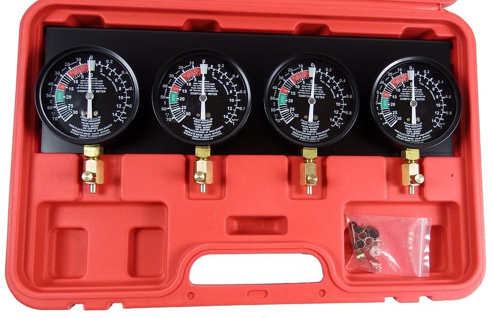 - манометры 3.5" 4шт для измерения давления 0~15psi, 0~1kg/cm², 0~76cmHg, 0~30inHg.