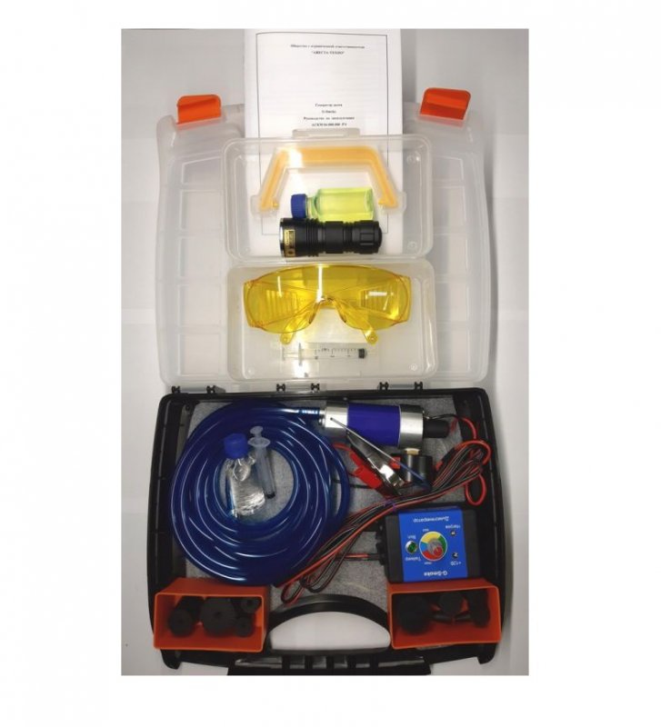 "G-Smoke" FULL Дымогенератор для авто с таймером и регулятором плотности дыма необходим, когда требуется обнаружить негерметичность в узлах и системах, влияющих на работу двигателя и электронного блока управления . Простой, удобный и доступный прибор для быстрого и эффективного поиска неисправностей. Поставляется с комплектом резиновых конусных пробок №1 (пробки без бокса) + УФ дымовой жидкостью + защитными очками + ультрафиолетовым фонарём 21 светодиод 395 нм