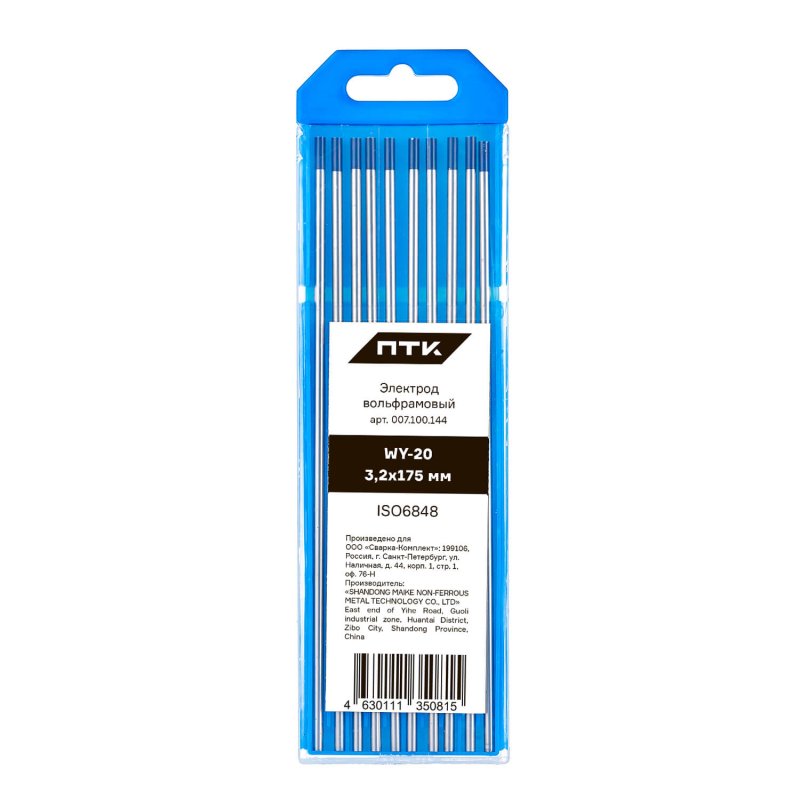 Диаметр электрода 3,2 мм, длина электрода 175 мм. Вольфрам имеет синий цветовой код. Поставляется в пластиковом пенале по 10 штук. В карточке с товаром указана цена за 1 вольфрамовый электрод.