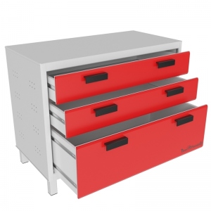 2 малых выдвижных ящика с внутренними размерами (ВхШхГ) 135х1040х545мм., 1 большой выдвижной ящик с внутренними размерами (ВхШхГ) 310х1040х545мм. Ножки в комплект не входят. Нагрузочная способность малых ящиков - 50кг., больших ящиков - 80кг., полки - 50кг. Полная нагрузочная способность тумб 600кг. Установка тумб возможна в 3-х вариантах: непосредственно на пол, на ножки, и колёса (2 колеса поворотных, 2 колеса поворотных с тормозом). Высота ножек или колёс составляет 125мм., соответственно высота тумбы увеличивается до 925мм. Также тумбы комплектуются пластиковыми лотками, которые служат защитным покрытием для верхней части.