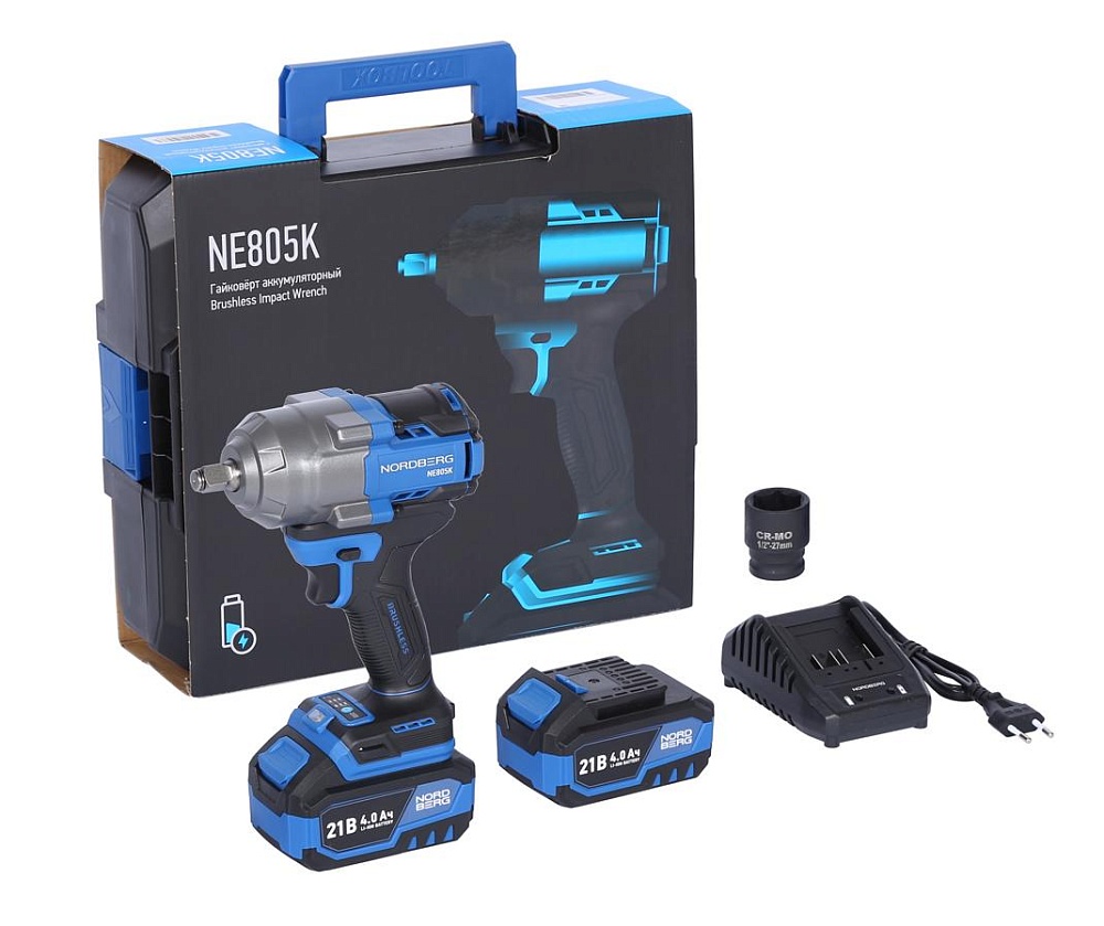 Гайковерт аккумуляторный, 1/2", 21 В, 1000 Нм, 2 аккумулятора 4 A и зарядное устройство, в кейсе NORDBERG NE805K купить в Краснодаре цена ✅ - Все для СТО