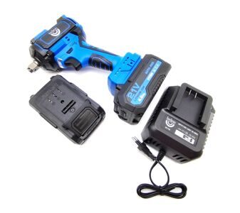 Мощный ударный аккумуляторный гайковерт BRANN для закручивания и откручивания болтов и гаек, с максимальным крутящим моментом 500 Нм. Присоединительный квадрат 1/2.” Поставляется в кейсе, с зарядным устройством и двумя аккумуляторами.