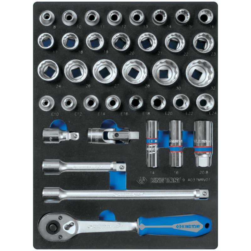 KING TONY Набор торцевых головок 1/2" с принадлежностями, двенадцатигранные, ложемент, 37 предметов KING TONY 9-4037MRV01 купить в Краснодаре цена ✅ - Все для СТО