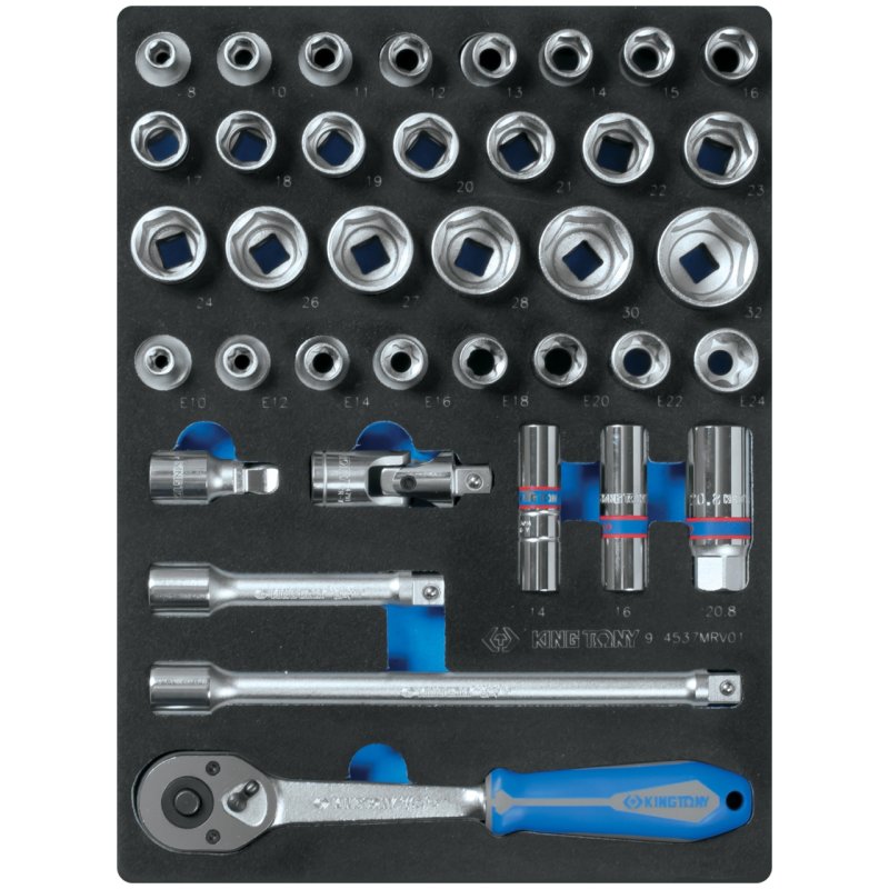 KING TONY Набор торцевых головок 1/2" с принадлежностями, шестигранные, ложемент, 37 предметов KING TONY 9-4537MRV01 купить в Краснодаре цена ✅ - Все для СТО