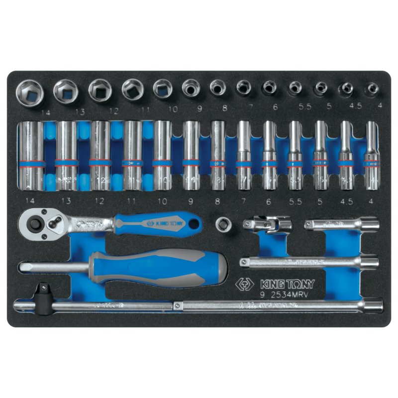 KING TONY Набор торцевых головок с принадлежностями 1/4", ложемент, 34 предмета KING TONY 9-2534MRV купить в Краснодаре цена ✅ - Все для СТО