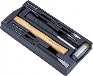 ТТ-13 Hans ложемент молотки и выколотки. Выколотка: 3, 4, 5, 6 мм Крейцмейсель 5 мм Зубило. Керн Молоток 500 гр. Молоток со сменными бойками 35 мм