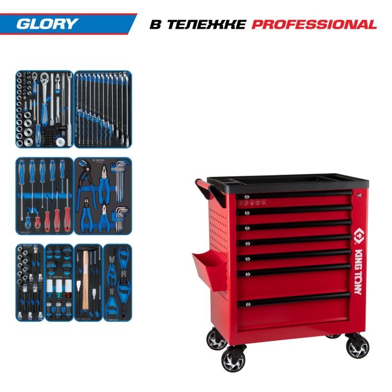 Набор инструментов 152 предмета, "GLORY", в красной тележке KING TONY 9G38-152MRVR купить в Краснодаре цена ✅ - Все для СТО