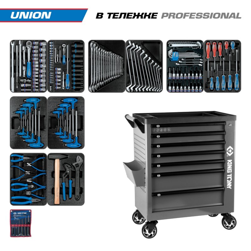 Набор инструментов 173 предмета, "UNION", в серой тележке KING TONY 9G38-000MRG купить в Краснодаре цена ✅ - Все для СТО