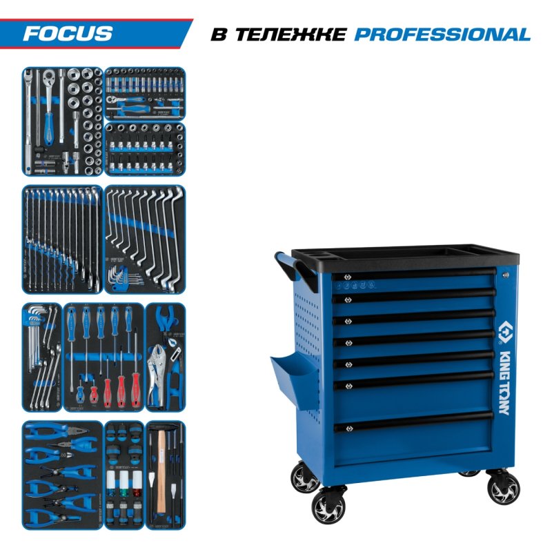Набор инструментов 188 предметов, "FOCUS", в синей тележке KING TONY 9G38-188MRVB купить в Краснодаре цена ✅ - Все для СТО