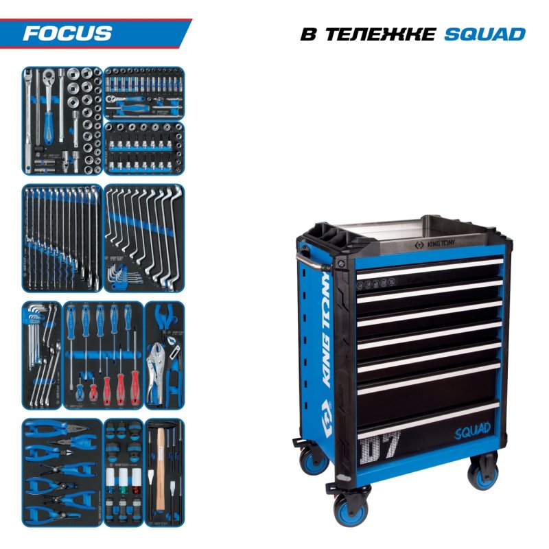Набор инструментов 188 предметов, "FOCUS", в синей тележке KING TONY 9SQ31-188MRV купить в Краснодаре цена ✅ - Все для СТО