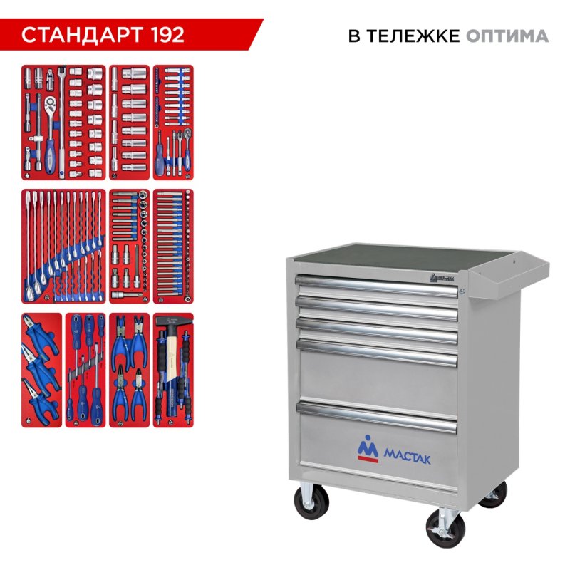 Набор инструментов 192 предмета, "СТАНДАРТ 192", в серой тележке МАСТАК 52-05192G