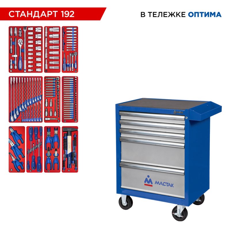 Набор инструментов 192 предмета, "СТАНДАРТ 192", в синей тележке МАСТАК 52-05192B купить в Краснодаре цена ✅ - Все для СТО