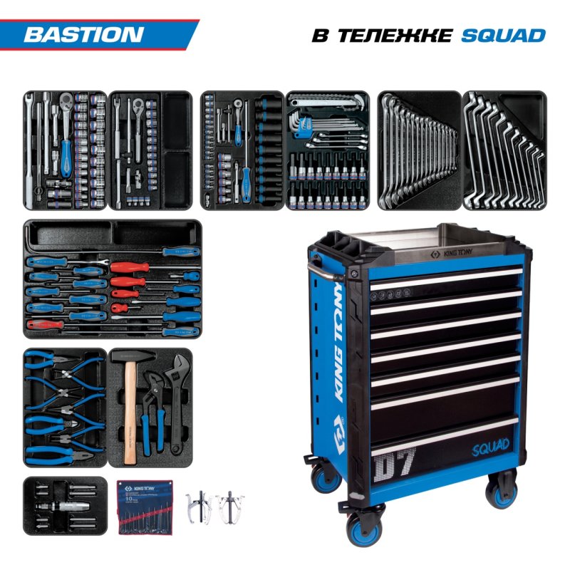 Набор инструментов 204 предмета, "BASTION", в синей тележке KING TONY 9SQ31-100MR купить в Краснодаре цена ✅ - Все для СТО