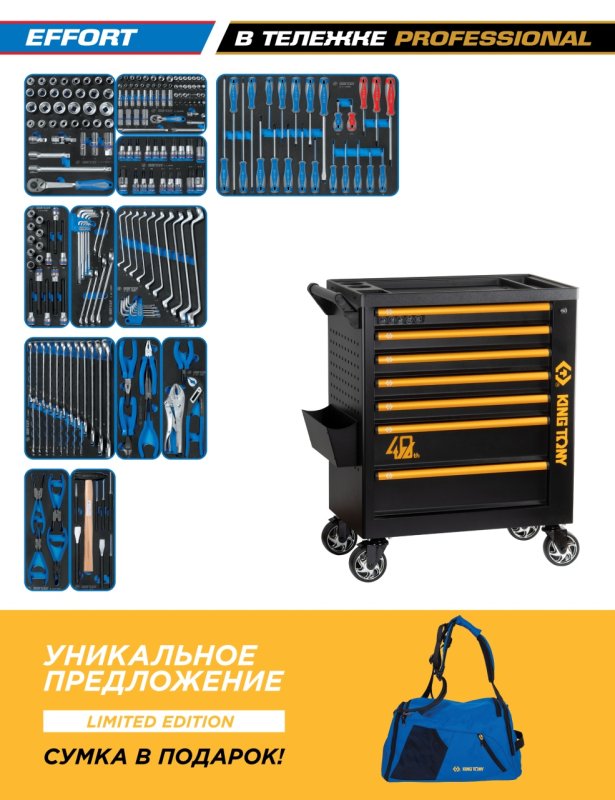 Набор инструментов 235 предметов, "EFFORT", в черной тележке KING TONY 9G38-235MRV40 купить в Краснодаре цена ✅ - Все для СТО