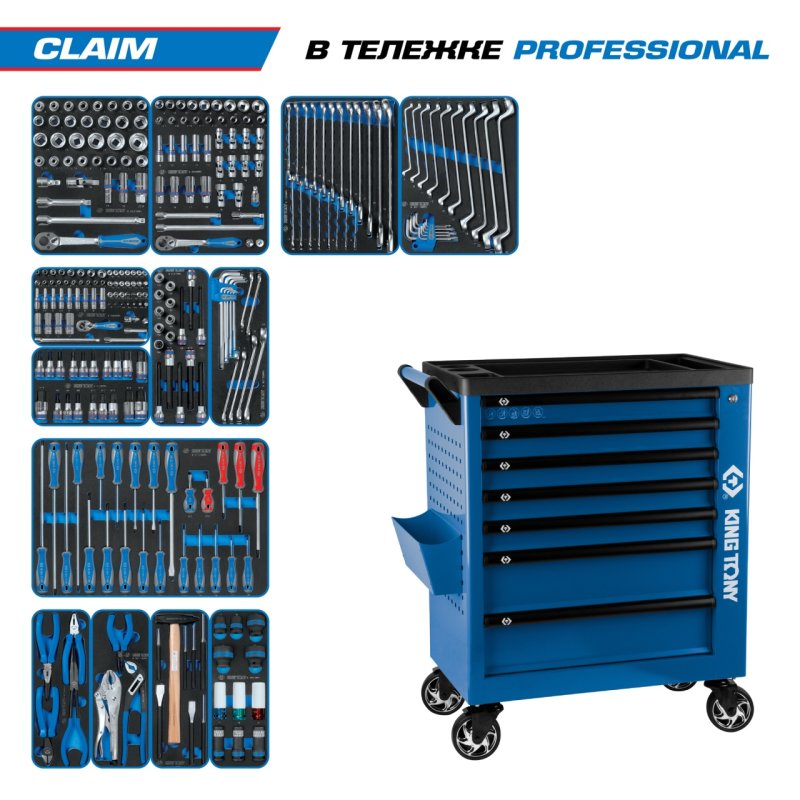 Набор инструментов 286 предметов, "CLAIM", в синей тележке KING TONY 9G38-286MRVB купить в Краснодаре цена ✅ - Все для СТО
