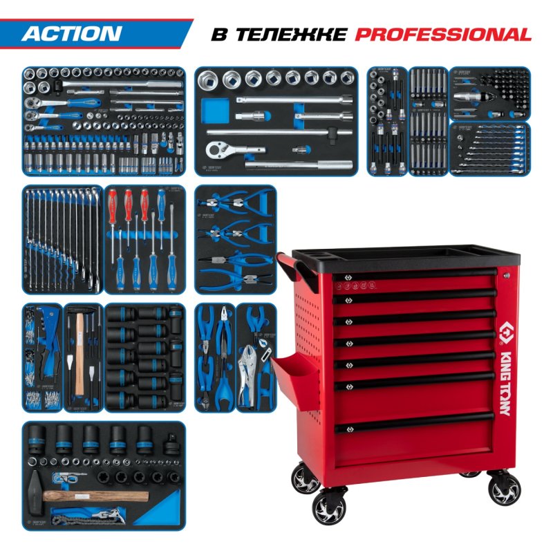 Набор инструментов 327 предметов, "ACTION", в красной тележке KING TONY 9G38-327MRVR купить в Краснодаре цена ✅ - Все для СТО