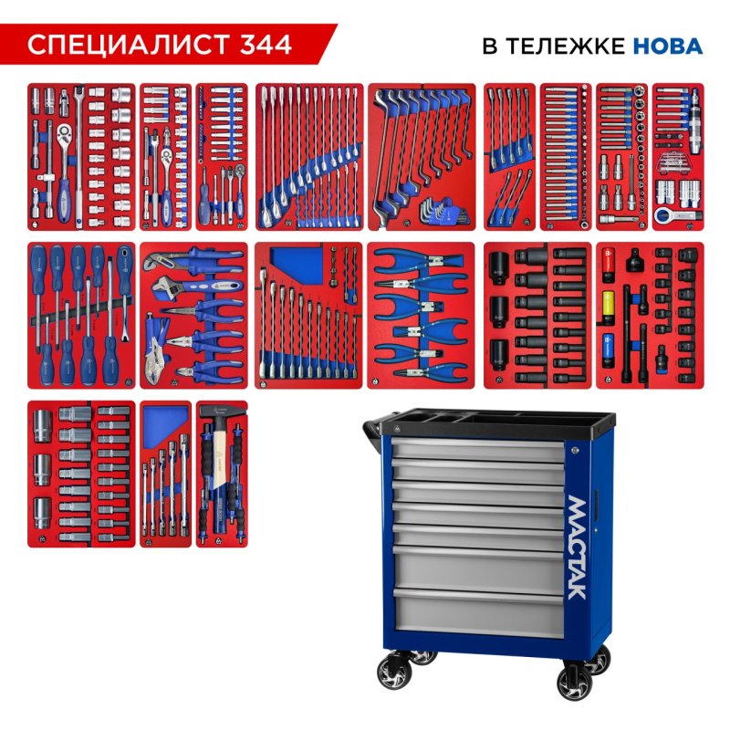 Набор инструментов 344 предмета, "СПЕЦИАЛИСТ 344", в синей тележке МАСТАК 50-07344B купить в Краснодаре цена ✅ - Все для СТО