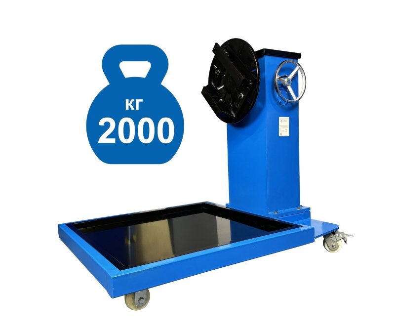 Оснащен редуктором для легкого вращения одной рукой. Редуктор позволяет поворачивать вывешенный двигатель на 360°. Надежная сварная конструкция и 4 колеса обеспечивают маневренность и устойчивость к перевороту. В комплекте поддон для сбора отработанного масла. С универсальным кронштейном для удобства вывешивания и обслуживания ДВС грузовиков. Для сборки/разборки моторов V6, V8 и V12. г/п: 2000 кг.<br /><br />Технические особенности TS-2000KR грузовой кантователь двигателя с редуктором:<br />Редуктор для быстрого вращения и фиксации агрегата одной рукой.<br />Основной вал и редуктор кантователя собраны на роликовых подшипниках<br />Поворот агрегата на 360 град.<br />Универсальный кронштейн для удобства вывешивания и обслуживания двигателей, кпп, мостов и других агрегатов,<br />Надежная сварная конструкция рамы<br />4 полиуретановых колеса (2 - прямых, 2 - поворотных с тормозом) обеспечивают маневренность и устойчивость, не царапают плитку и наливные полы.<br />Съемный металлический поддон для мелких деталей и сбора отработанного масла<br />Лоток для инструмента и крепежа<br />Можно установить грузовой кантователь вплотную к моторному отсеку грузового автомобиля<br />Если крепления на агрегате не совпадают с штатными отверстиями на фланце, допускается сверление дополнительных отверстий в диске.<br /><br />Грузоподъемность стенда составляет 2000 кг, при габаритной длине (вылете от монтажной площадки) закрепляемого агрегата, не более 0,9 м.<br />