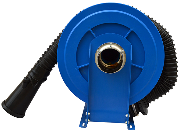 Катушка со шлангом для удаления выхлопных газов (шланг 10,0м. х Ø102 мм)   Механическая пружина возврата шланга. Комплект поставки: шланг из термостойкого армированного эластомера (TPE)., резиновое газоприемное сопло с рукояткой, стопор, салазки для крепления.