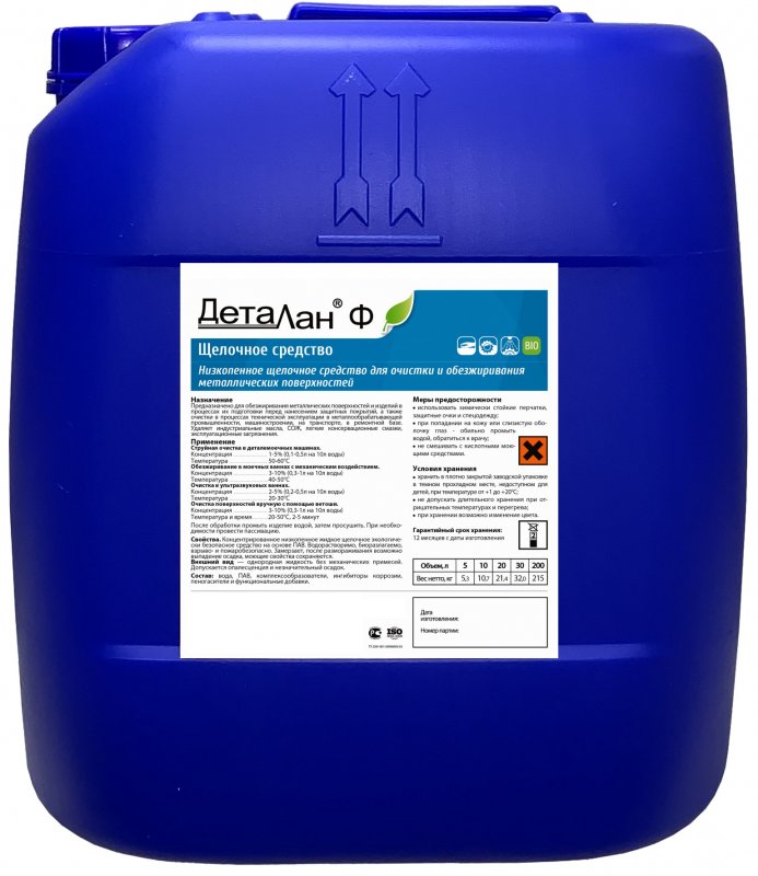 Деталан Ф - это низкопенное средство предназначено для обезжиривания металлических поверхностей в процессах подготовки перед нанесением защитных покрытий, в т. ч. лакокрасочных.