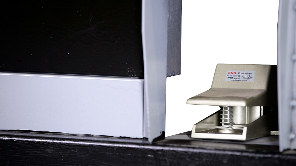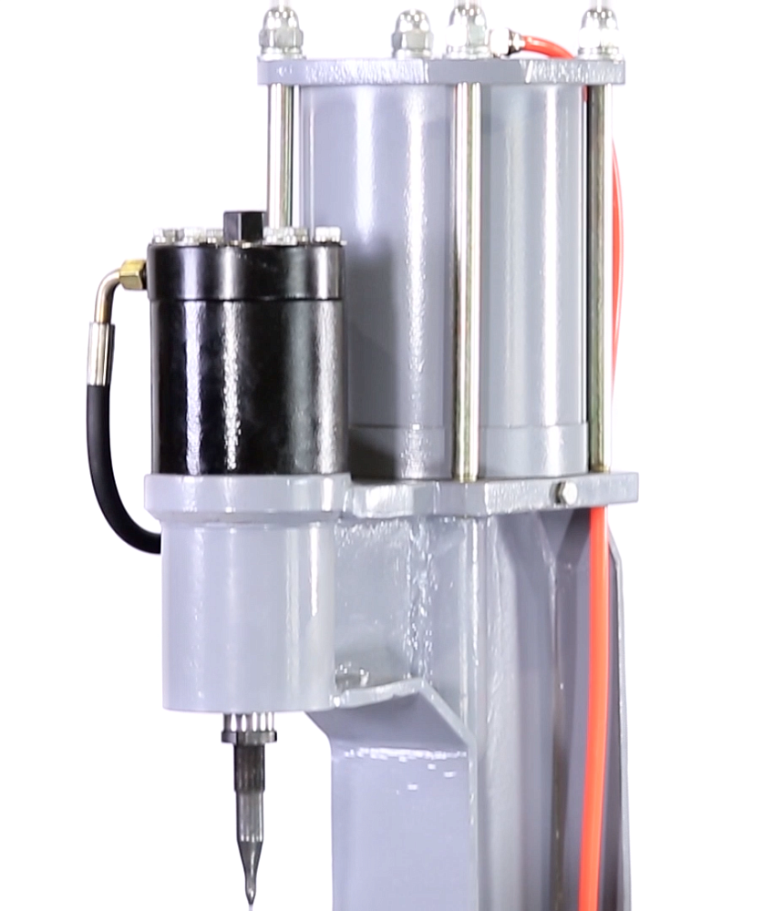 Основное отличие от станка KRW300 заключается в использовании воздуха в качестве источника энергии, а непосредственно процесс расклепки и заклепки осуществляется за счет давления гидравлики, что обеспечивает плавность хода пуансона.