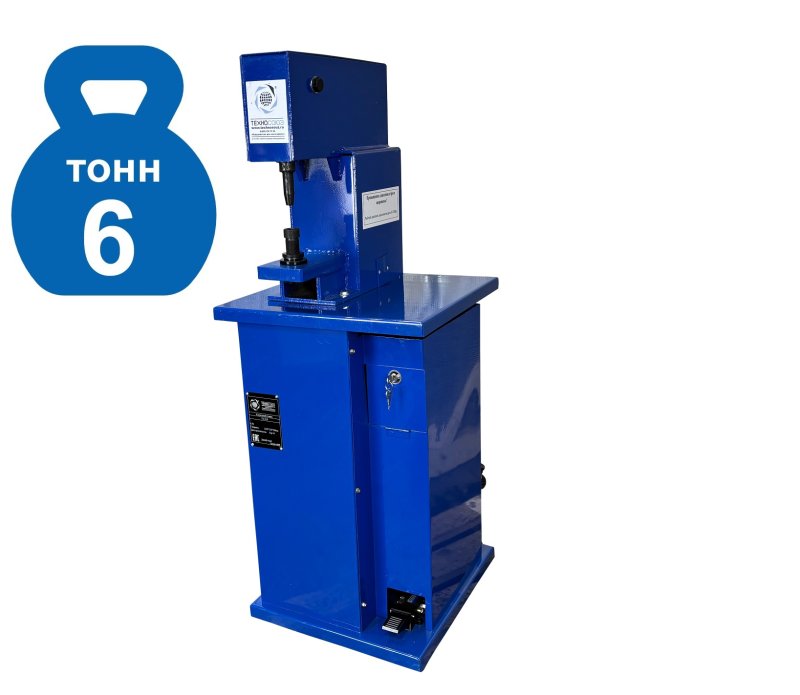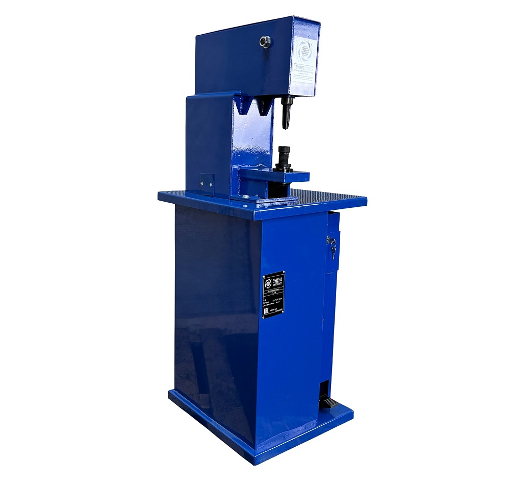 Вертикальный. Тип – пневматический. Управление – педалью. Напольный. Материал клёпки – медь, алюминий D= 6 / 8 / 10 мм. Усилие до 6т. Клепальный станок для тормозных колодок, фрикционных дисков сцепления легковых и грузовых автомобилей, автобусов. В стандартной комплектации предусмотрены пуансоны для работы с отечественными и импортными автомобилями. Требуется подключение к компрессору. Рабочее усилие клепальный станок развивает с помощью сжатого воздуха.