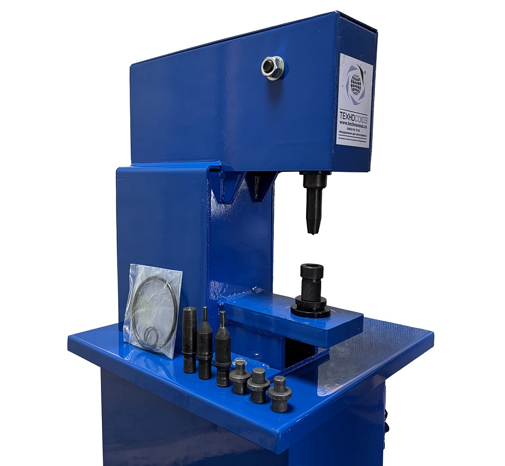 В шток вкручивается пуансон требуемого диаметра, регулируется по высоте опускание контргайкой;