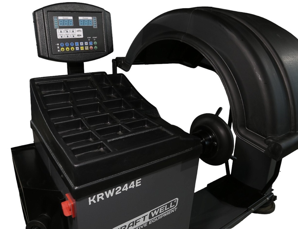 Балансировочный станок KraftWell VERTA KRW244E – обеспечивает балансировку грузовых и легковых колес до 150 кг. Ручной ввод параметров, LED-дисплей, четыре режима балансировки: ALU-1, ALU-2, ALU-4, STATIC. Пневматическое подъемное устройство, точный вал 40 мм, низкий уровень шума (<70 dB), эргономичный стол с отделениями для грузиков.