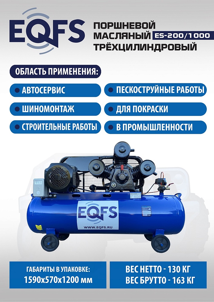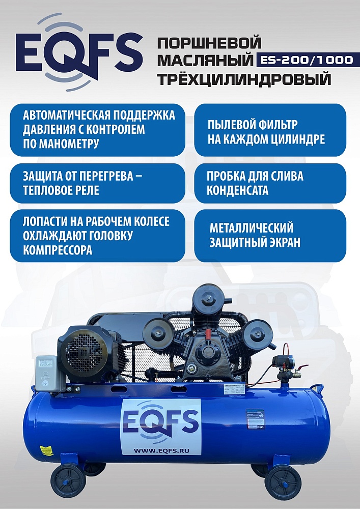 ES-200/1000 Компрессор поршневой трехцилиндровый 200 литров купить в Краснодаре цена ✅ - Все для СТО