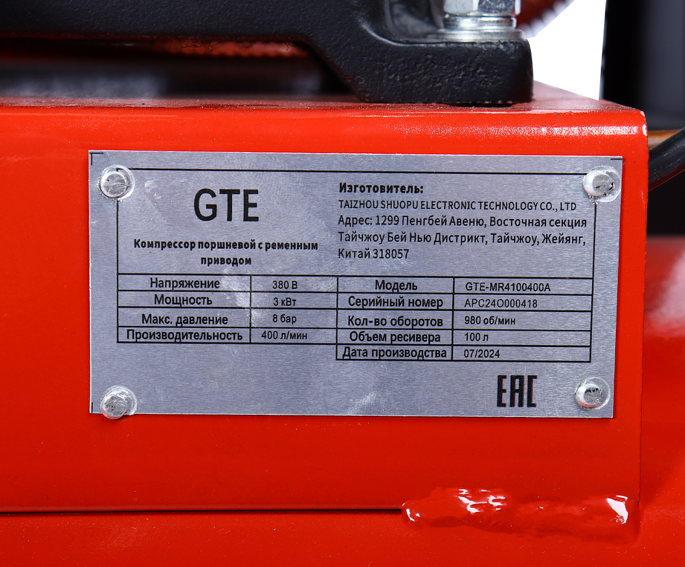 GTE-MR4100400A Компрессор поршневой с ременным приводом 380В купить в Краснодаре цена ✅ - Все для СТО