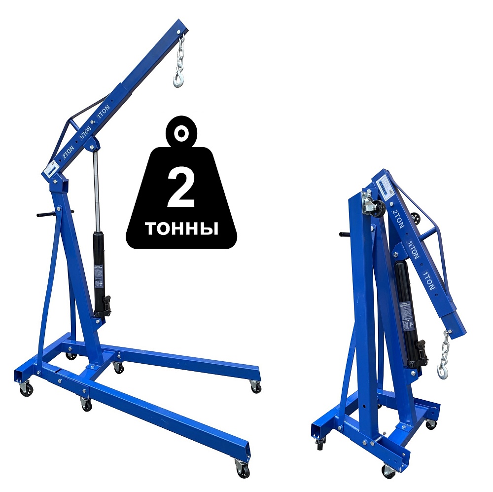Для личного пользования и гаража. Складной — складывается стрела и нижние аппарели. Грузоподъемность 2т. Высота подката всего — 18 см. Рабочий диапазон стрелы 860-1350 мм. Высота подъёма крана от пола цеха 0÷2270 мм. Для подъема и транспортировки автомобильных узлов, агрегатов и любых других грузов как внутри помещения, так и на улице. Вынос стрелы регулируется в соответствии с максимальной грузоподъемностью крана.