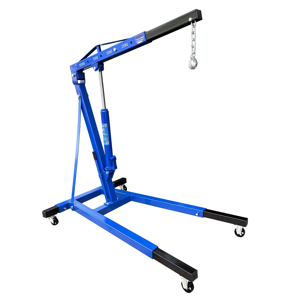 Кран гаражный гидравлический, складной.  Грузоподъемность 2,0 т. Высота подъема 2380мм. Длина стрелы 1500мм. Высота крана 1400мм.
