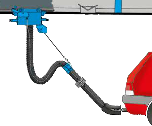 В комплектацию системы входит: профильный алюминиевый рельс, скользящие каретки, термостойкий шланг, подвес для шланга, вытяжная насадка с фиксатором, вытяжной вентилятор, кронштейны для крепления рельса, аксессуары для крепления и подключения вентилятора.