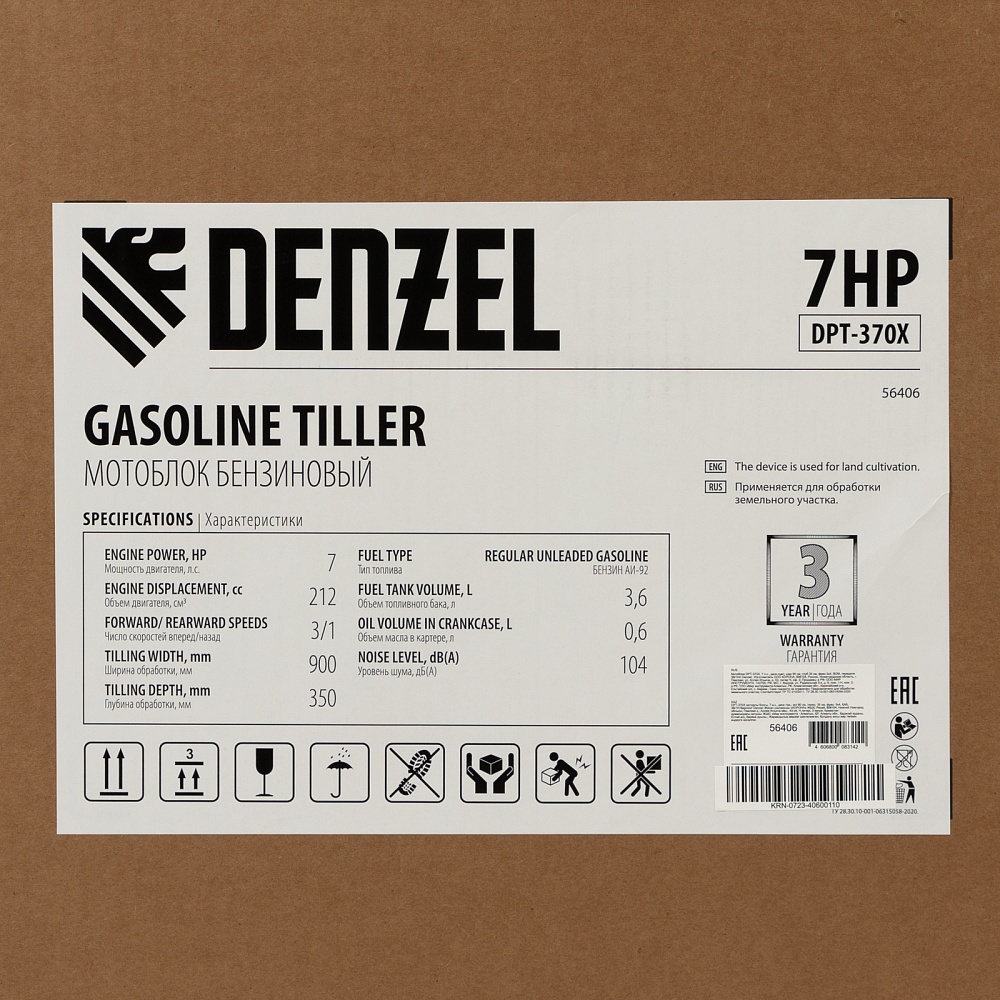 Мотоблок DPT-370X, 7 л.с, дисковое сцепление, ширина 90 см, глубина 35 см, фрез 3 х 4, ВОМ, передачи 3В/1Н Denzel