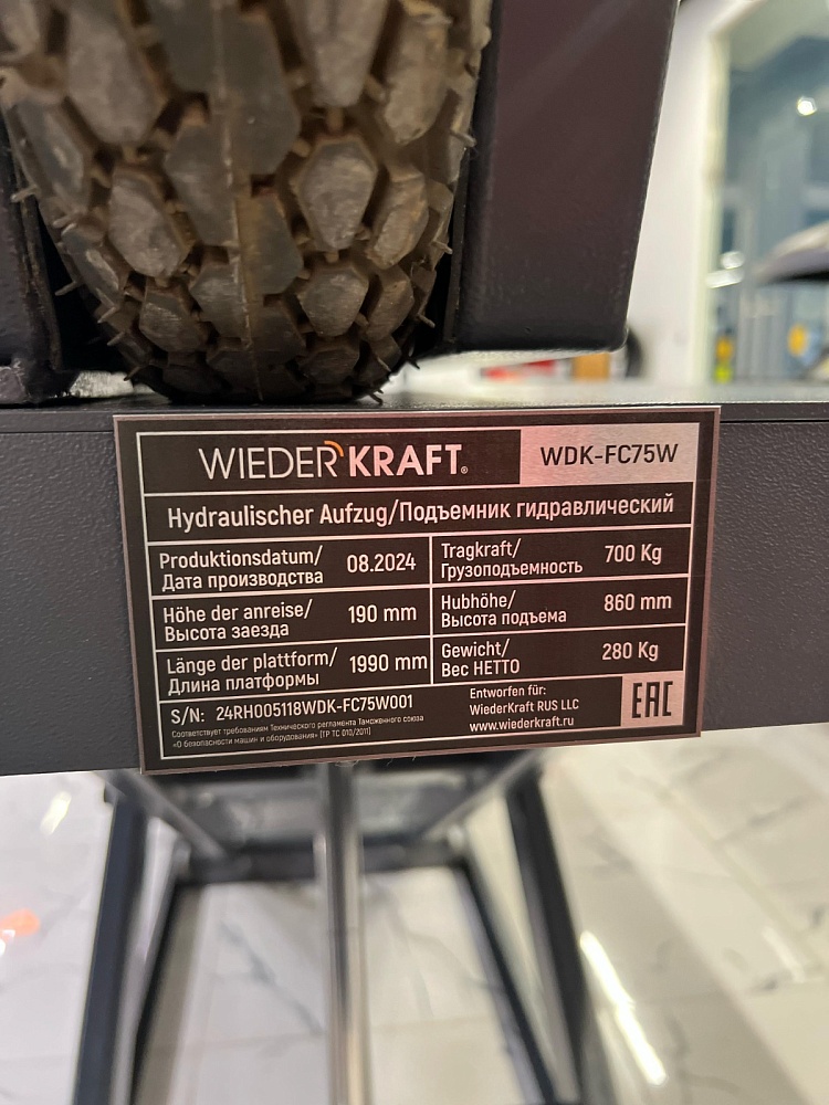 WDK-FC75W Подъемник пневмогидравлический для мототехники, г/п 700 кг WiederKraft купить в Краснодаре цена ✅ - Все для СТО