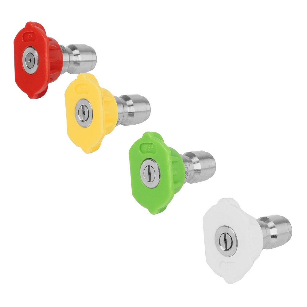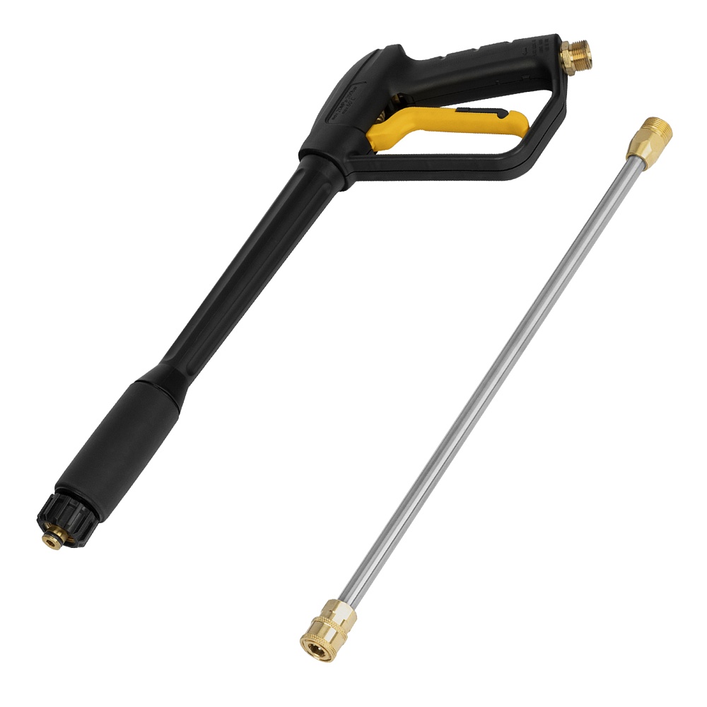 Мойка высокого давления, Шланг высокого давления, Пистолет моечный, Насадка-удлинитель, Форсунки 4 шт., Пеногенератор с бачком для моющего средства, Входной штуцер с фильтром, быстросъемный коннектор шланга, Игла для прочистки сопла, Инструкция по эксплуатации с гарантийным талоном