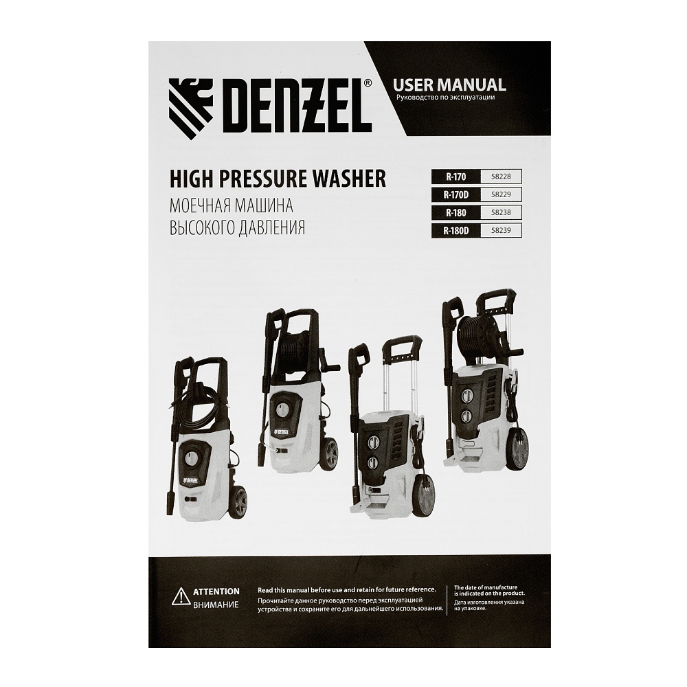 <p>Колесная моечная машина высокого давления Denzel R-170 58228 мощностью 2000 Вт и производительностью 360 л/ч подает струю воды под давлением 170 бар и используется для очищения поверхностей. Позволяет быстро удалить загрязнения с кузова автомобиля, мотоцикла, велосипеда, садового и хозяйственного инвентаря, очистить садовую дорожку и террасу, а также стены и окна строений. Источником воды может служить водопроводная линия, а также любая емкость — машина способна работать в режиме самовсасывания. Мойка пригодится владельцам загородных участков.</p><h2>Преимущества</h2><ul><li>Надежность — двигатель с медной обмоткой обеспечивает стабильную работу моечной машины даже при высоких нагрузках.</li><li>Защита от перегрева — термозащита отключает двигатель в случае перегрузки, предохраняя его от поломки.</li><li>Высокий ресурс — алюминиевая помпа рассчитана на интенсивное использование.</li><li>Экологичность — машина работает без вредных выхлопов и неприятных запахов.</li><li>Система фильтрации — вода поступает без посторонних примесей, что увеличивает срок службы машины.</li><li>Класс защиты II — двойная изоляция токопроводящих элементов надежно защищает пользователя от поражения электрическим током.</li><li>Установка оптимального вида распыления — насадка-удлинитель оснащена регулируемым соплом.</li><li>Блокировка рычага пистолета — защита от случайного запуска обеспечивает безопасность пользователя.</li><li>Комфортная работа в труднодоступных местах — насадка-удлинитель позволяет очистить самые удаленные уголки.</li><li>Эффективная работа — можно использовать моющее средство, для которого предусмотрен встроенный бачок.</li><li>Простое подключение — быстросъемный адаптер позволяет легко присоединить входной шланг.</li><li>Длина шланга и кабеля 5 м — не нужно часто перемещать машину, можно работать на удалении от розетки.</li><li>Несложный уход — в комплект поставки входит игла для прочистки сопла.</li><li>Мобильность — мойка оснащена колесами и ручкой для удобного перемещения. </li><li>Гарантия 3 года — высокое качество машины подтверждена производителем.</li></ul>