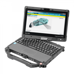в противоударном корпусе с защитой IP 65 и мощной начинкой от компании Bosch. Особенностью данного ноутбука является его легкая трансформация из ноутбука в планшет. Он был разработан специально для работы в условиях автосервиса, с его помощью можно управлять работой системного сканера или мотортестера. Имеет операционную систему Windows 10 Pro, твердотельный HDD 256Гб и оперативную память 8 Гб. Сенсорный экран DCU 220+ поддерживает два режима управления сенсором или пальцем.