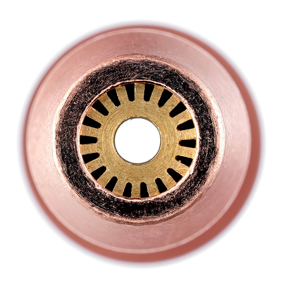 Латунный внутренний мундштук №1А для инжекторных ацетиленовых резаков Р2А-02М. Толщина разрезаемого металла 8–15 мм. Мундштук с шлицевыми пазами для выхода подогревающего пламени.